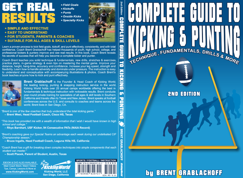 Are you looking for the best Kicking Book for kickers and punters? We have you covered. Coach Brent Grablachoff, professional kicking coach based in San Diego, California authored the Complete Guide to Kicking & Punting book. It is one of the hottest selling football instructional books in the last decade and the only all inclusive kicking book of its kind. What makes this kicking book so unique besides the incredible content and attention to details and step by step learning style is the fact that it is available in both a Paperback book and also an eBook. What that means is if you purchase the eBook version, you can immediately download it and read it- from any tablet, cell phone or computer.